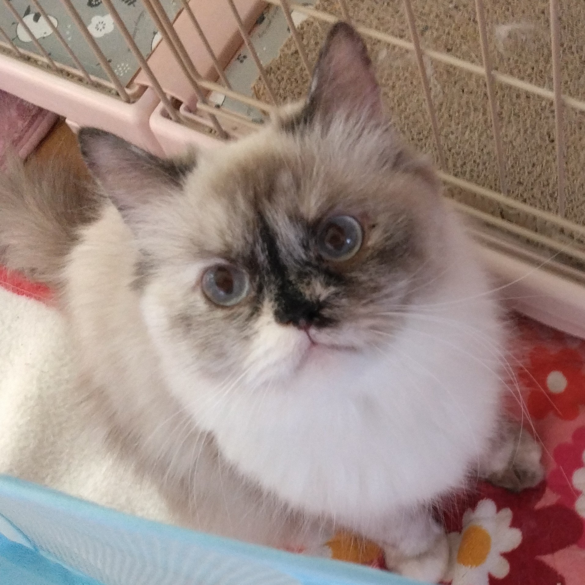 お顔はヒマラヤン特有のエクストリームフェイスで、愛らしい鼻ぺちゃが印象的。