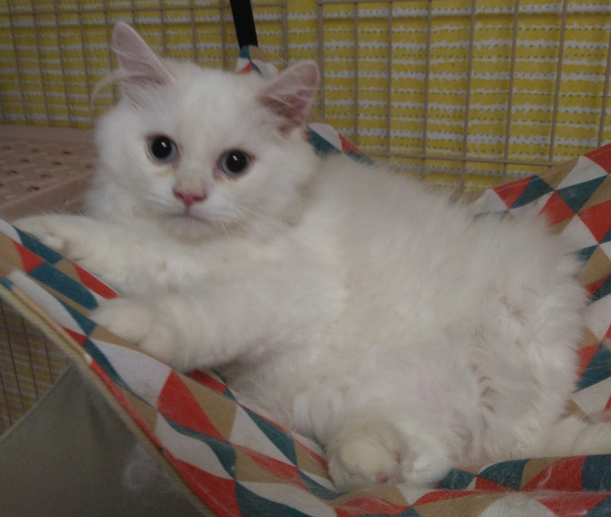 今は大きなケージで、きょうだいたちと遊んだりゴロゴロしたり、毎日元気いっぱい。体重2.5kg