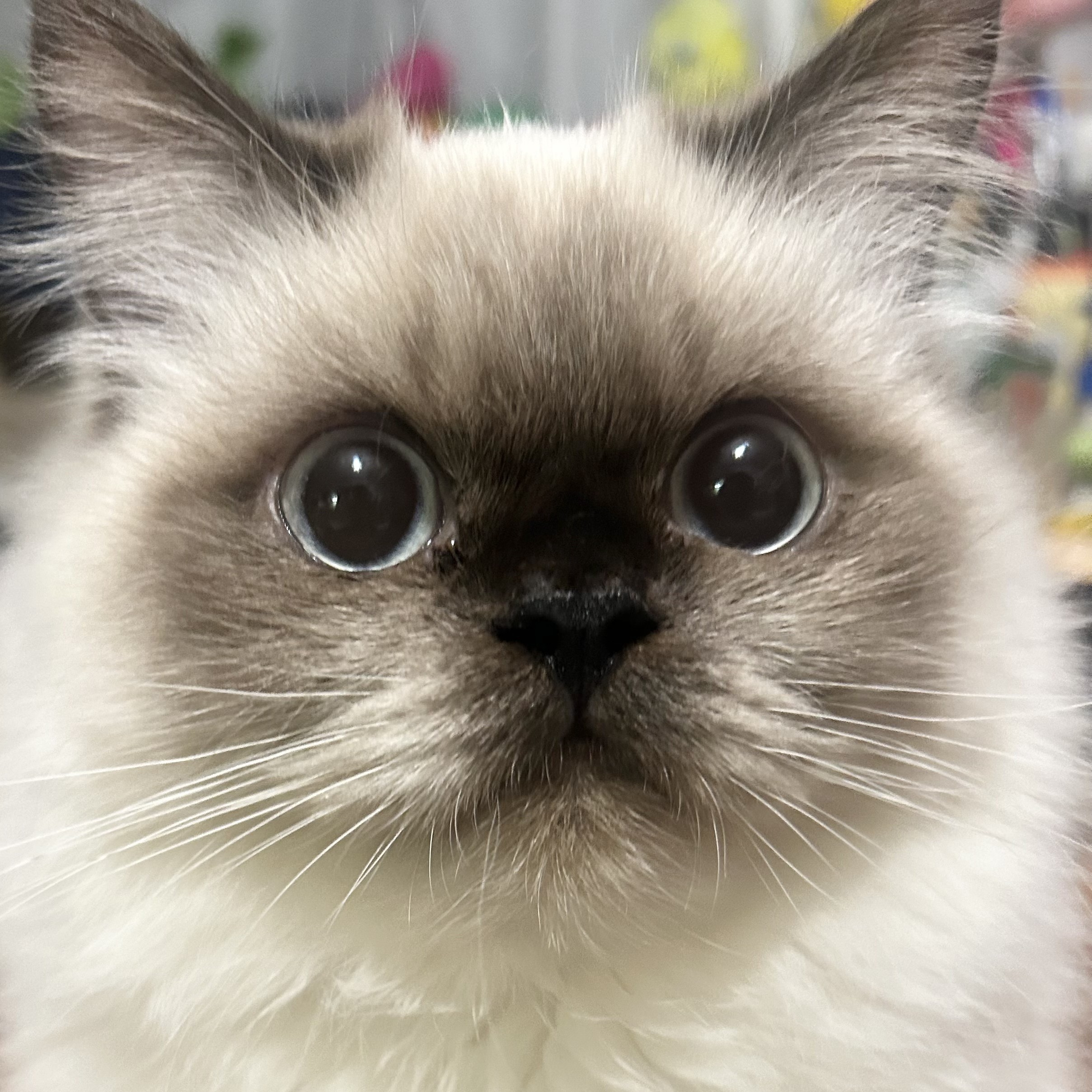 A. ヒマラヤンは大人しいと聞いていましたが思いのほか活発でした!!しかし気性の荒さは全くなく、怒らず喧嘩せず、超穏やかでびっくりです。シャムの良いところは全部持っている印象で、明るい性格も大きな尻尾も平べったい顔も全部めちゃくちゃかわいいです!